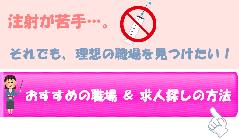 患者さんに注射するのが怖くてできない!と思う方は、注射なしの求人もいくつかあるので調べてみて下さい。ほんの小さなミスが命を奪う結果となるのです。